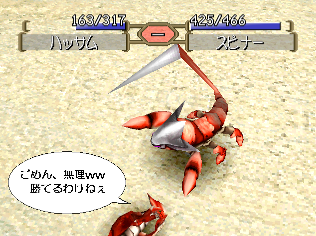 つまりこのスピナーは敵として出てくるだけなのです。姿が格好良いだけに本当に惜しい…