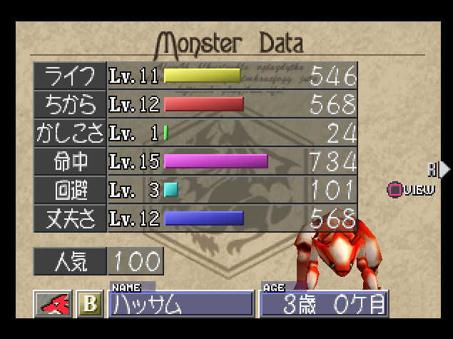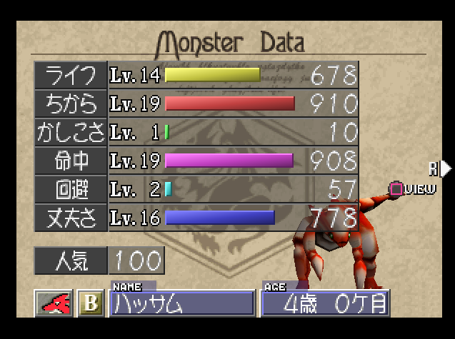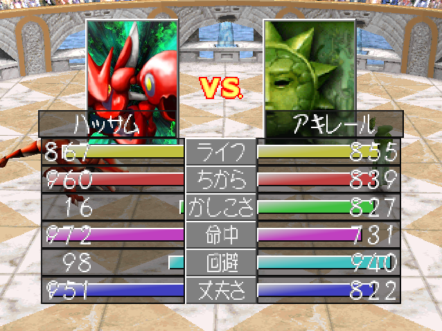 ライフ 466 ちから 495 かしこさ 314 命中 489 回避 257 丈夫さ 781
